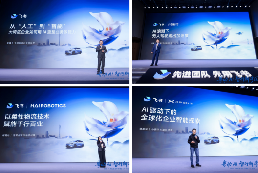 在专题演讲环节,来自飞书、小马智行、海柔创新、小鹏汽车等企业的代表,分别围绕“AI时代的先进组织力”“无人驾驶加速落地”“柔性物流赋能千行百业”“全球化企业智能探索”等主题展开分享。活动还设置了飞书展区对接参观与小鹏汽车展厅参观交流及试驾环节,为参会企业提供了近距离体验AI技术赋能实体经济的场景,促进供需双方深度对接。